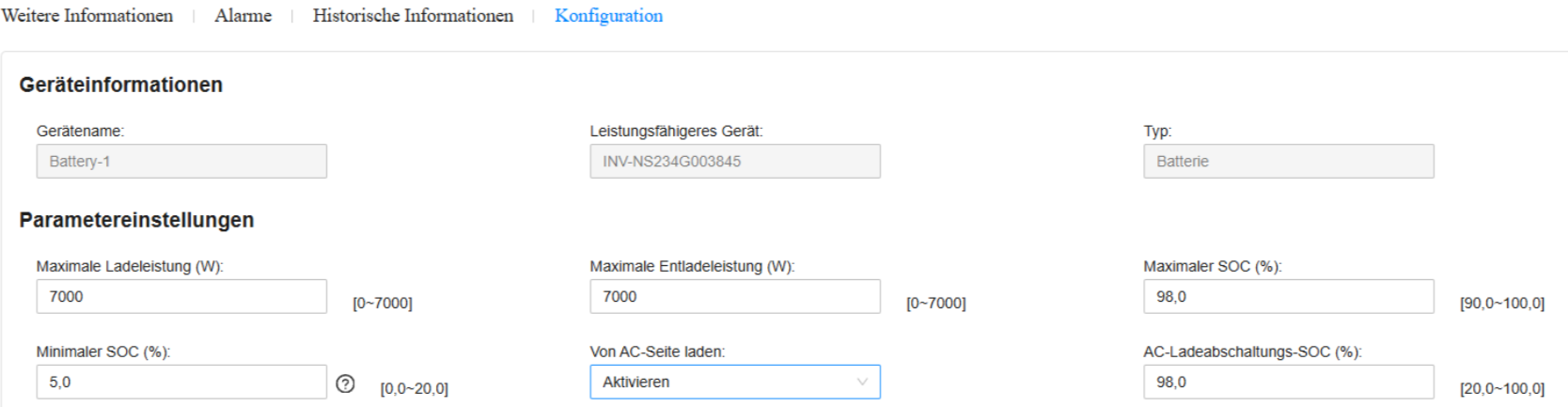 5. "AC-Ladeabschaltungs-SOC (%)" auf den gewünschten Wert stellen (Empfehlung >90%)